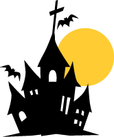 ゴーストハウスと十字架 ハロウィンのシルエットイラスト イラスト無料 かわいいテンプレート